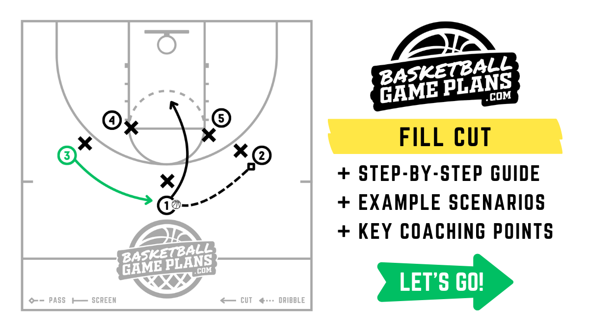 A fill cut (sometimes called a blast cut) is when a player fills an empty spot on the court, usually after that spot was vacated due to a cut or other action by the player previously positioned there. Most motion offenses rely heavily on fill cuts, making them a critical skill to master.